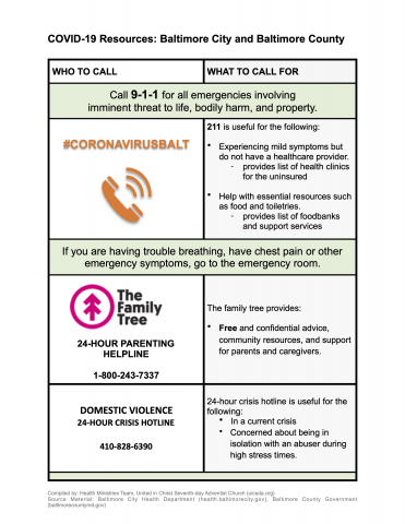 - Food Support: www.mealsonwheelsmd.org or call 443-573-0942